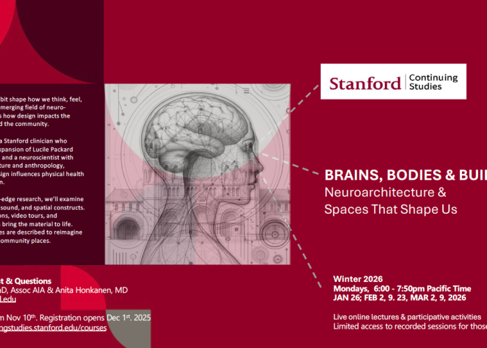 This course, led by a Stanford clinician who helped guide the expansion of Lucile Packard Children’s Hospital, and a neuroscientist with degrees in clinical neuroscience, architecture and anthropology, introduces how design influences physical health and mental function.